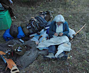 Back in camp, Max was one hungry dog. He had been hungry the whole trip. We had brought his normal allotment of dogfood, but with all the exercise he was looking for more. We made the mistake of leaving his doggie pack on the ground, and he managed to open one of the zippers and got into one side of it. He devoured three servings, a day and a half's worth of food. Uh-oh. Now he was going to be really hungry...