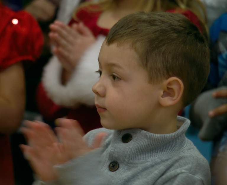 The Kindergarteners were not going to be able to stand still much longer, so we switched over to them.