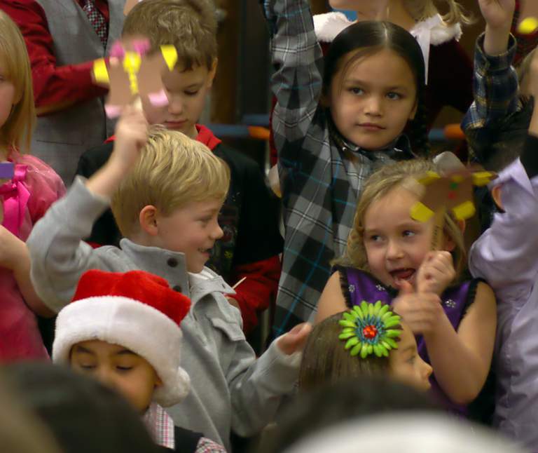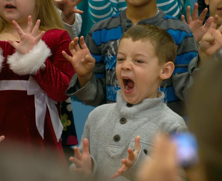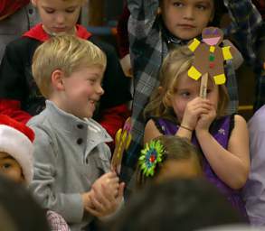 Aidan and Riley, two of our grandkids, had a holiday singing performance at their school. My hat is off to the teachers and music instructors -- it's hard for us to keep just our two occupied and attentive!