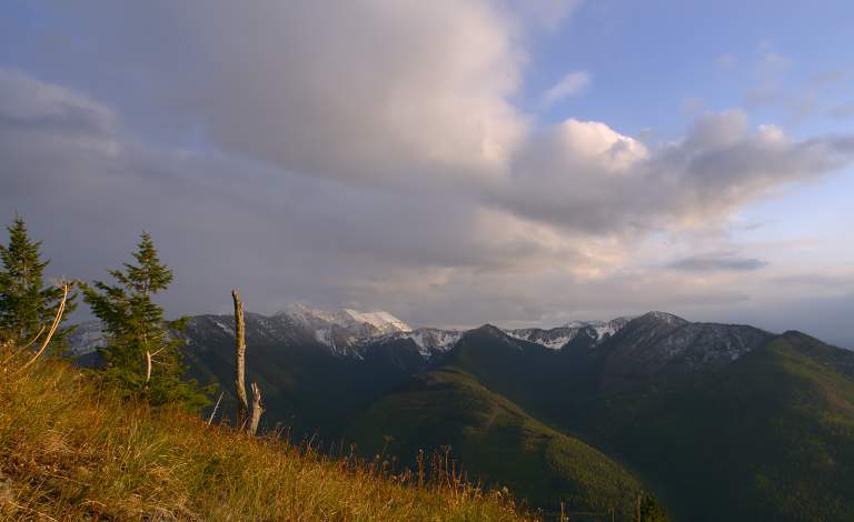 The trailhead is pretty high, so right away you break out to where you have a good view of both sides of the valley -- the Swan Range to the East and the Mission Mountains to the west.