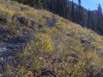 Looking up towards the Ridgetop Frost on the trail