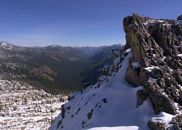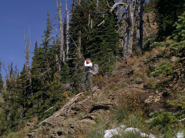 Sid heading north on the ridge Looking down Babcock Cr.