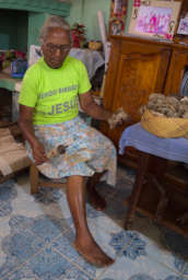 The other thing we were interested in seeing was how the local silk manufacture and weaving was done. Lova inquired around and then we wandered down a steep brick alleyway to where a lone woman had a shop where she turned silk from the endemic wild silkworms into cloth. She explained the process to us and demonstrated on her floor loom.