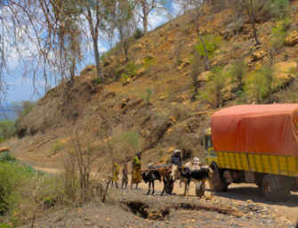 Sometimes we would pass what looked to be a livestock truck converted to transport people — a truck-cum-bus.