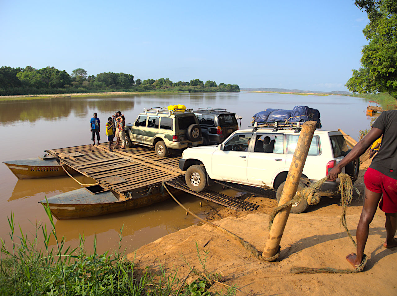After lunch, we had to catch another ferry, this time across the Tsiribihina River. The Tsiribihina ferry does not go straight across the river to the other side, but has to go upstream a kilometer or so, so it is a much longer ride. There was a fair amount of river traffic, with ferries coming and going. It looked like every one was different. Ours held three cars, was made of two pontoon canoes made of flattened corrugated tin rivited and welded together, with one engine at the stern of each pontoon. It took 30-40 minutes to slog our way upstream.