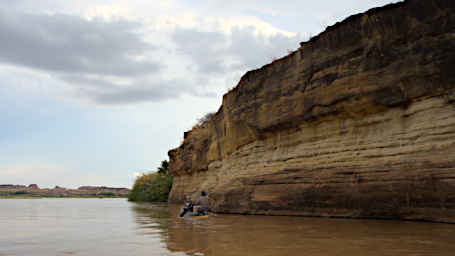 The river is not "wilderness"; all along the way there are small villages set back from the river where you can't easily see them (except for the last day in the canyon). As we paddled along we would see people on the bank, bathing or fishing or just watching us. Sometimes they would wade part-way out to talk to the guides or make an exchange of some sort; the guides brought a few things down for people they knew who lived along the way and needed something.