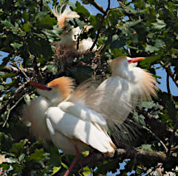 Then we came to a town with the craziest sight of all — waterbirds nesting in pine trees. With all the native forests in the surrounding area gone, the herons and egrets had resorted to nesting in a grove of pine and other trees in town.