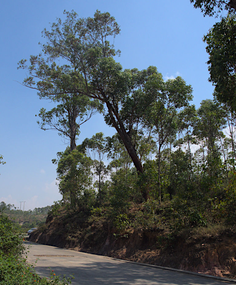 We came to a place where there were a few Eucalyptus trees by the side of the road. While non-native, they show the contrast between the forest which once covered this landscape and the current grass dominated one. The native trees, however, take much longer to reach a height like that.
