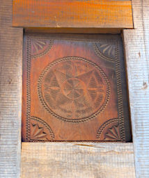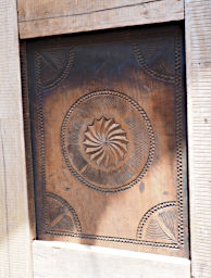 Houses have carved window closures. A spider web design signifies family ties; a honeycomb, community; the sun ... Scissors, circumcision; one for each son.