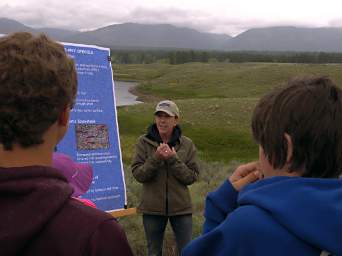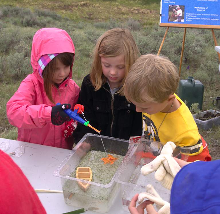 After the swans were released, the kids attended an outdoor education program where they learned about aquatic plants, invasive plants and how to help prevent their introduction into Montana, and our native wildlife. The program was put together by Elaine Caton with local community members assisting the presentions to the kids.