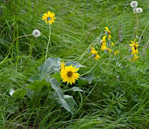 We were a few days early for the full bloom of the Bitterroots. Most of them were just starting, but a few were partially open. The Arrowleaf Balsamroot were mostly done blooming; there were also a few Penstemon. I think this one is Alberta Penstemon.