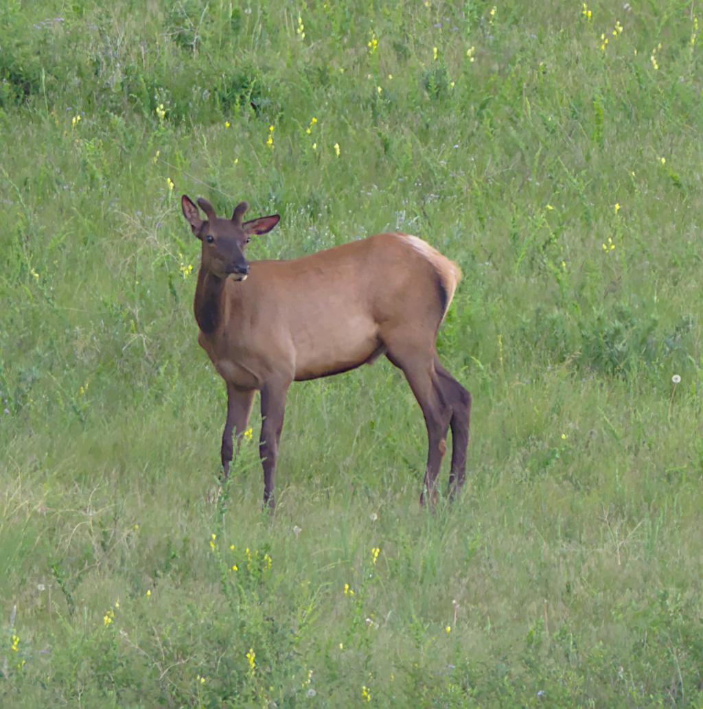 We also saw a few elk towards the end of our drive. I thought they were cows, but when I blew up the picture below I could see they were bulls just starting to grow their new antlers.