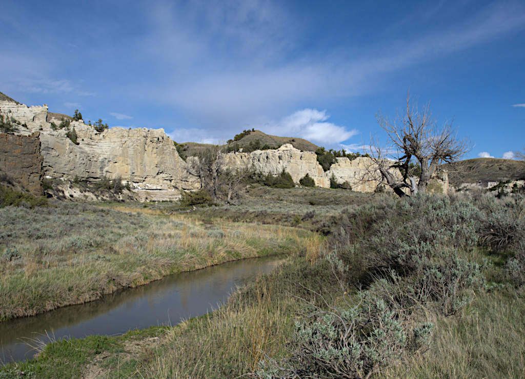 Randy and I also cleaned up in the river; it felt great to be clean for a bit. My hiking boots were caked in bentonite, from when I had sunk in on our hike up the coulee across from Eagle Creek. It was a real bear to clean them off.