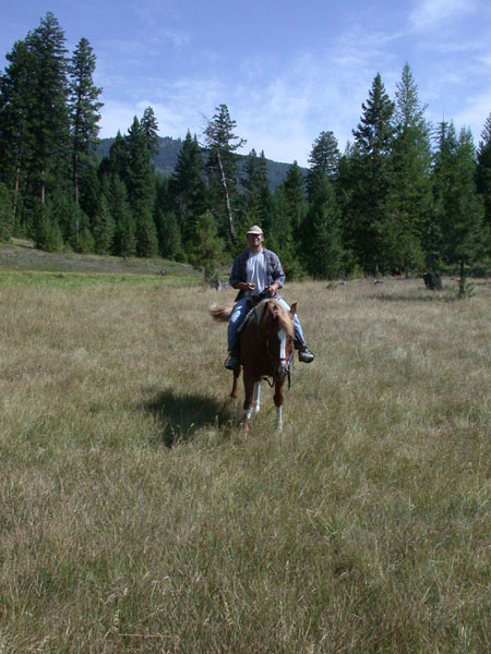 Pegler and I went for a ride over the river and through the woods, and part way up Ovando Mountain. The service berries were ripe, so we grabbed some whenever we could. We managed to run into a small grizzly bear on our way down. He (or she, I didn't get close enough to check...) was standing up in a patch of service berries gobbling away. We also saw a boatload of small frogs on some kind of mass migration. Maybe they know something we don't. Plus geese, ducks, sandhill cranes, and whitetail deer.