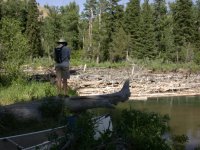 | Portaging Canoe | Ian inspecting log jam |