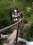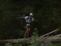 Ian and Trudy on the Trail Ian and Trudy on log bridge Trudy on log bridge Ian on log bridge