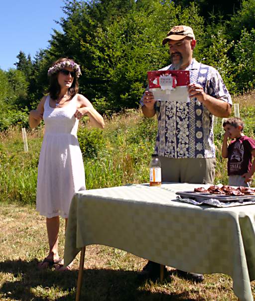 The last of the games was a jeopardy game. Five categories, one of which was Ram and Dawn. One question was "who loves birds more?" See, the chicken thing way back there was important! Another category related to bird relationships. And them some obscure things like famous weddings, which I was useless for.
