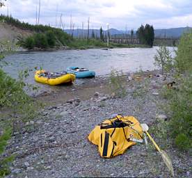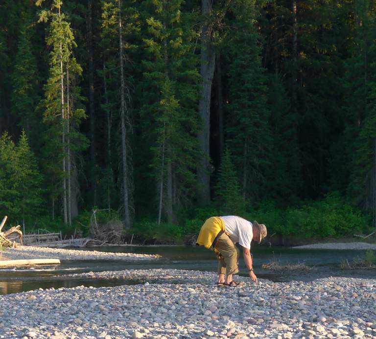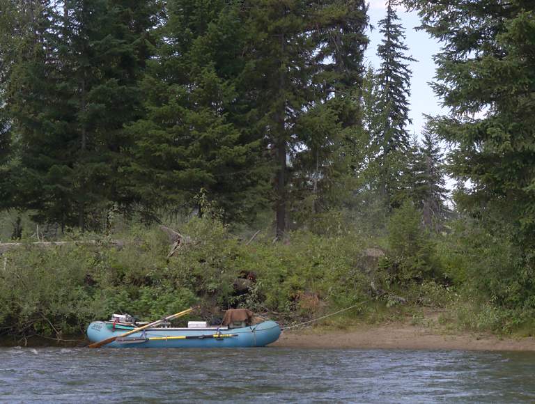 We had severe restrictions on where we could camp — because Pete had Ellie along, we couldn't camp anywhere on river left, as that's Glacier National Park and no pets are allowed. In addition, the right bank is not all public land, so you need to make sure you are camping on public land. After a short float, about five miles, we found an adequate campsite and pulled in.
