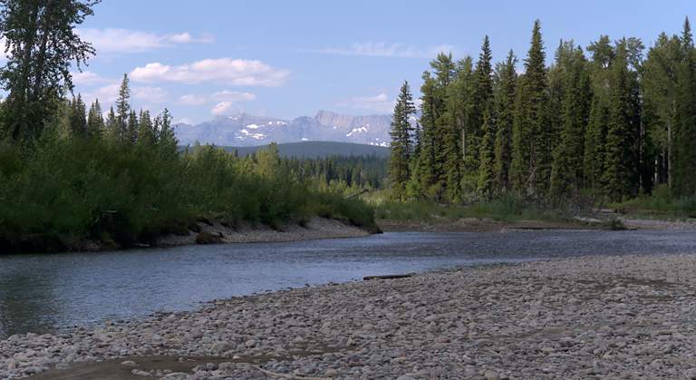 Everything you read about the North Fork of the Flathead says it is a wilderness type float, with few people. All of that information is 25 years out of date. Our shuttle drivers told us a few days earlier there was a line of 30 vehicles at the put-in at the Canadian border, where we were, waiting to launch. After we got here at 1:30 in the afternoon, three more parties showed up and launched. On the morning of our launch, a party of nine boats plus one kick-boat drove up and launched before we put on.