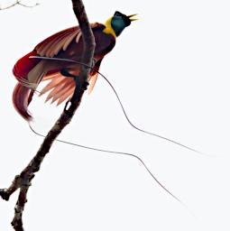 In the Wilson's Bird-of-Paradise, the head is structural color. It is bare skin, not feathers. The intense blue color is made by the arrangement of proteins inside the skin. The bright yellow neck patch and the red back and wing coverts are pigment color; they look the same regardless of the angle from which you view them. As the Cornell video explains, the handlebar mustache tail can look bright blue if caught in just the right light; another example of structural color. On the front side, the bird's sometimes green breast shield is another irridescent structural color. Even the legs can appear blue if viewed in just the right light. It seems like almost every part of this bird is a crazy color adaptation! For a more in-depth discussion of many forms of structural color, see "Color from Structure" in The Scientist.