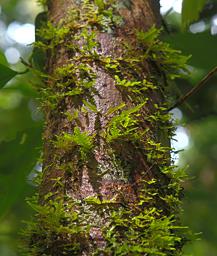 When the morning's drama was over, we headed back to the road to meet up with Ram and Mehd. On the way we found a number of small trees with typical rain-forest buttressed roots. We also found what looked like a fern growing as a vine up a tree.