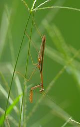 It's a jungle out there... Check out the second grasshopper below, compared to the "normal" first. As nearly as we can tell, it is missing one big spiky back leg and one middle leg on the opposite side. Plus it has huge antennae. A survivor of some close calls.
