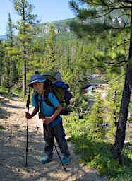 The first ford was too deep to cross and stay dry, so we changed to river shoes and waded across. Jack didn't bring hiking poles and I usually don't either, but this time I brought a pair thinking they might come in handy. We split them up, one for each of us.