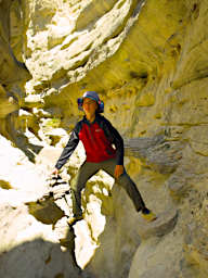The slot that is the coulee forks near the beginning, and we had taken the right fork. After a ways it opens back up and you come out of the slot. We stopped for snacks and water, then climbed up over a ridge and dropped back down into the upper end of the left-hand slot. and followed it down to the fork.