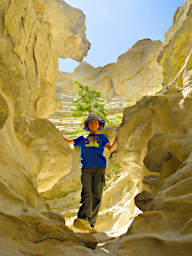 We stopped at the Eagle Creek Campground to explore Neat Coulee. I suggested to Jack that he not wear socks because all the grass-seed would grab on to it, but I think he was worried sandals without socks would give him blisters. In any case, after a bit he took them off.