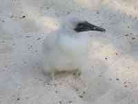 Belize's first protected area, Half Moon Cay Natural Monument was originally established in 1928 to protect the Booby colony which nests here. It is maintained by the Belize Audubon Society in conjunction with a European Union organization. There were baby Frigate Birds wandering around on the beach, looking like... dumb baby birds.