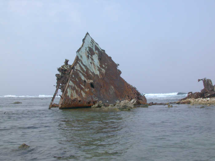 I went back to Malakii, and then over to the wreck on the eastern reef. Even on this nice day, when it was dead calm inside the reef, the surf was pounding on the outer reef. I would not want to be upwind of it on a bad day.