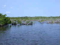 The wind piped up pretty good; the whole inner lagoon was covered with white caps. The inner lagoon was dotted with mangrove islands with shallow flats all around; a perfect habitat for manatees, bonefish, and salt-water crocodiles.