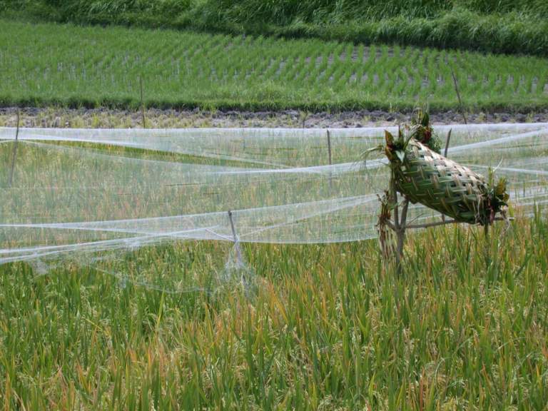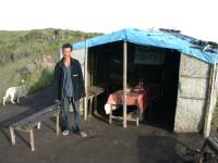 tiny vegetable gardens in the midst of a jumbled floe of lava;