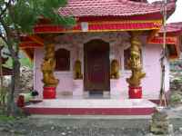 In between dives, I wandered up a trail on the shore and came to a Hindu temple. It had some great stone carvings of dragons guarding it.