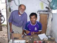 One day we went to a smaller village where Wayne knew a jeweler, Nangah Sukuwata. Wayne had wanted him to make him some pieces, and on a previous trip had brought some mail order catalogs so he could show Nangah some ideas of what he wanted. As they were thumbing through it, Nangah pointed at something and said, "I made that." Unfortunately, he does not get most of the money you pay for the item. If you buy from him in his shop, you can pay him much more than the wholesalers will and it is still a whale of a bargain.