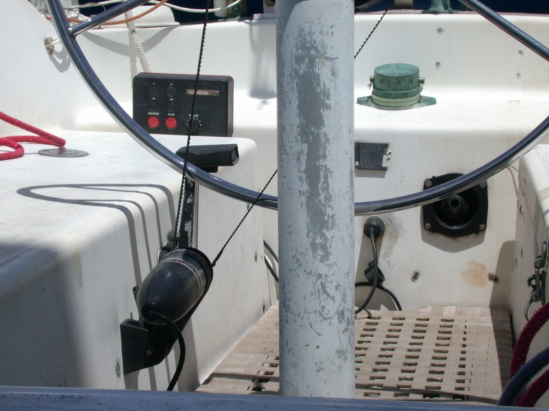 It was getting time for me to either renew my Belizian cruising permit or head back to Guatemala; I headed to Placencia and Big Creek to check out. The autopilot mount had been broken ever since I bought the boat, and it finally disintegrated. I discovered I could wedge the logic unit between the cockpit seat and the back of the cockpit moulding. Another project for when I get home, to make a new mount.