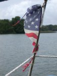 All the hard sailing the past few years have taken their toll on my ensign. Someone remarked that it was a bit tattered, and I said that's how I feel about my country right now. I hope this next election will start to straighten things out, but there is a lot of ground to be recovered if we're ever to regain the respect we once had as a nation.