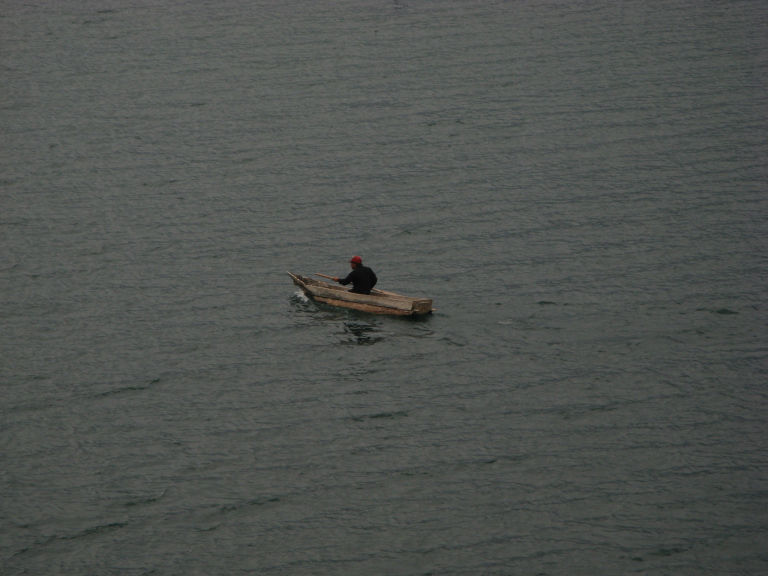 The hotel had canoes we could use, so we hopped in one and paddled around our arm of the lake. The wind was blowing a little, but the volcanoes sheltered this narrow arm fairly well. There were many small farms coming down to the lake, with more expensive houses separating them here and there.