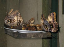 Then we wandered around the small aviary (butterflyary?). Unfortunately, butterflies are more active in the morning, and we were there in late afternoon going on evening. But we still saw quite a few different species. The Owl butterflies were amazing. When I first saw them feeding on the bananas in the pan on the picture at the far left below, it took my mind quite a few seconds to turn the ones on the right from an Owl into an actual butterfly. All I could see was those two big eyes, and my mind wouldn't let go of that being an owl. If you happen to know what the ones labelled "Aaa," etc., are, please let me know. We had an I.D. card while we were there, but I didn't buy one to bring home.
