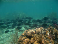 We put my dinghy anchor on Kris and Tom's skiff and used it to explore a bit, snorkeling in a number of different places. After the first day the wind increased and stirred up sand in the water, so visability wasn't very good as the first day and we didn't see as many fish.