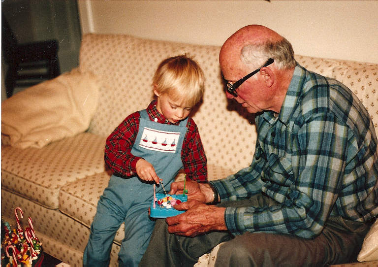 Dad also really enjoyed his birthday. Mom would always make a cake, usually an angelfood cake, and for that she would cover the hole in the middle with a piece of waxed cardboard, such as a cut-out from a milk carton, and then frost over the whole thing. The birthday boy got the middle piece with all the extra frosting.