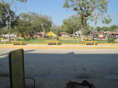 We got up reasonably early and caught a collectivo back to the bus station at the outskirts of San Pedro Sula. It dropped us off by the highway across from the bus station, where there is a pedestrian crosswalk over the highway to get to the bus station. So we walked over to the bus station and started inquiring for a bus to Cofradia, the town at the bottom of the mountains where Cusuco National Park is. The taxi driver we asked said you can't get a bus to Cofradia from the station, and that we had to go back to town to get one. But he would take us for 301 limpera each. We said no thanks. We went inside, found a bus, and asked the driver if he could tell us where a bus to Cofradia was. He said no, Cofradia buses are at the other end of the terminal. So we went to the other end and asked again, and they said no too. Hmmm... After a lot of questioning and pointing at the map, I figure out we go back out, back over the pedestrian crosswalk to where the collectivo dropped us off, and catch a bus coming down the highway. Eventually, after many buses not going the right place, one came. As Dona put it, "This is the first one actually labelled to where we are going!"