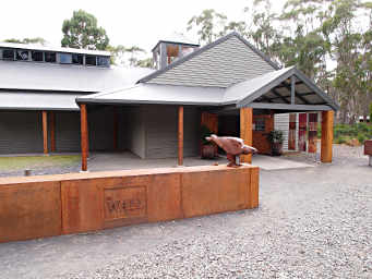 After an enjoyable waking up to a serenade of birds in the Lake St. Clair campground, we headed down the road to Derwent Bridge and "The Wall". We had been told by several people we should stop to see "the wall," particularly when they learned Dona likes to make things with wood. Unfortunately, we only have photos of the outside of the building, as they don't allow photos inside.