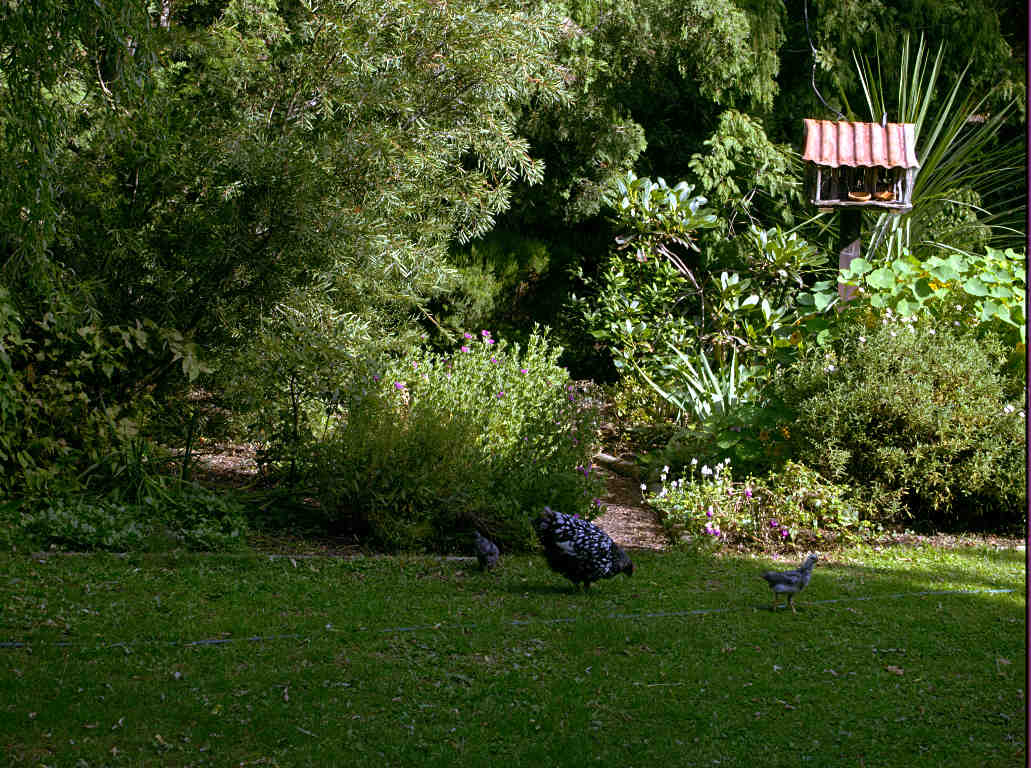 We were staying with Dona's long time friends and sometimes research companions, Peter and Deirdre Frappell (Frapps), and their two kids Claire and Huon. Deirdre met me at the Hobart airport, which is a nice small airport like Missoula's. She took me home, where I started a load of wash to clean up from Borneo. Dona arrived a few hours later, and we had a great dinner. Their house has a great yard running over with different species of shrubs, trees, grasses, and stuff in general. Lots of things for birds to eat, along with their two chickens with their chicks. Huon and Claire have grown a bunch since we last saw them at our wedding just a few years ago!