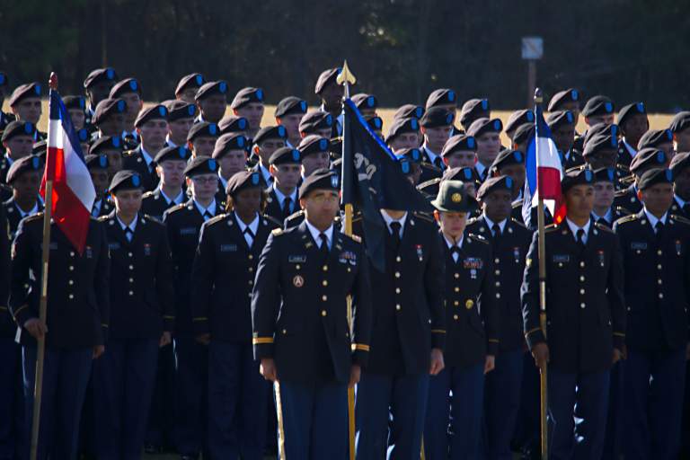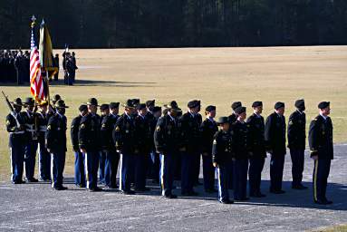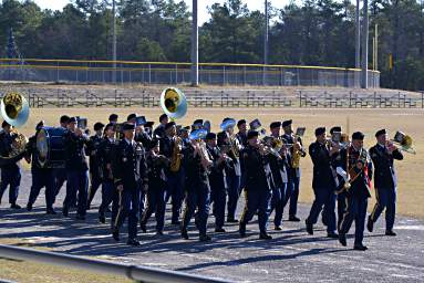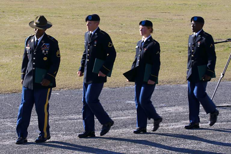 This time the newly minted soldiers marched onto the field in formation, with a color guard and band.