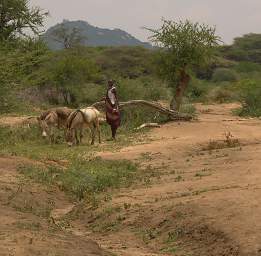 We wound our way off our rocky outcrop, then down into the bottom of the Yaeda Valley. We crossed it to the west, then bumped along the foot of the Kidero Mountains. As we worked our way north, we stopped to talk to the locals walking from all points of the compass to a big party. We gave some a ride, and in between kept our cameras busy. We asked one of the women we picked up where she was going and she said she was "Just walking around."