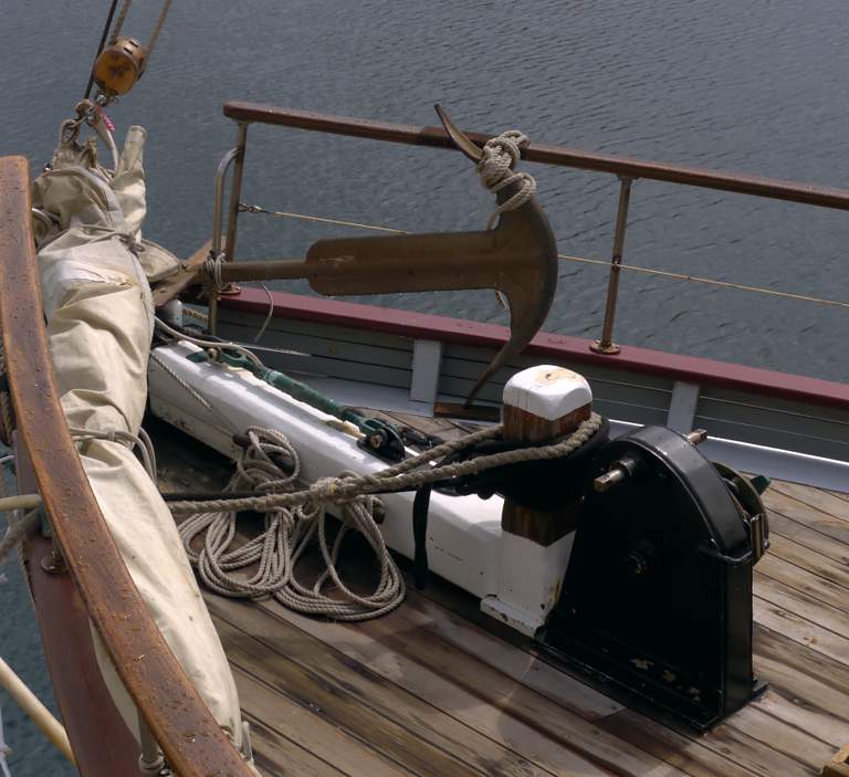 We wandered around Hobart on our bikes, and I enjoyed looking at some of the boats tied up at the docks. The S/V Rhona H was a nice looking gaff-rigged ketch. I was puzzled by the shape of her rudder; I don't understand the purpose of the large horizontal plate at the top.