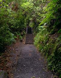 New Zealand trails are in really good shape. The DOC spends a lot of time and money on maintenance, and it shows. It places where it is generally wet, muddy, and consequently slippery, they put down a wire mesh to help hold the dirt in place and give you traction so you don't slip as much. When they build a bridge over some feature, they usually put chicken-wire on top of the boards for the same reason, as shown in the photo below. When there is a steep section, they invariably install steps to make it easier to ascend and descend without slipping.