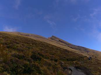 As I neared the trailhead and the end of my day's journey, Mt. Ruapehu came into view. Shortly afterwards I saw a familiar figure hiking up the trail towards me. Dona had had an enjoyable day hiking on Mt. Ruapehu, and was surprised to see me so soon. Dangit! I could have climbed Ngauruhoe...