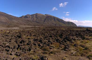 When I first got a glimpse of Mt. Ngauruhoe and Central Crater I heard a dull thumping sound; eventually I realized it was a helicopter on the far side of the Crater. I looked through my binoculars but couldn't figure out what they were doing. Some hours later when I had walked farther along I saw they had been near the trail; I couldn't see any work they had been doing. Maybe it was a medical evacuation. In any case, they left after a while and peace returned to the volcanoes.
